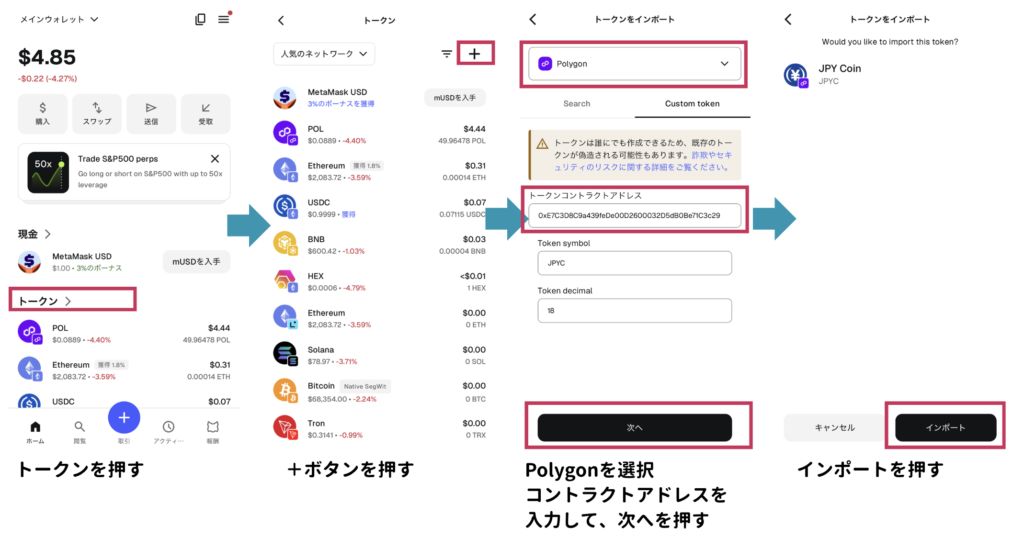 MetamaskにJPYCをインポートする