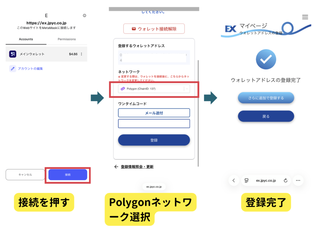 JPYC EXにメタマスクのウォレットアドレスを登録する