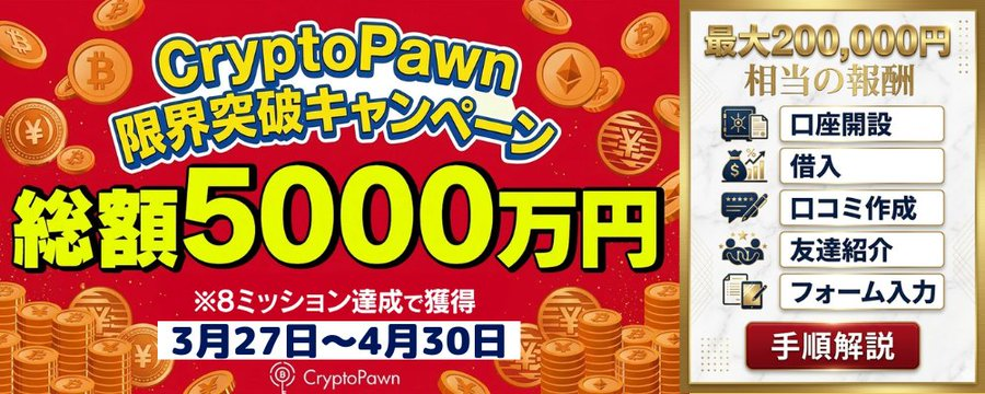 キャンペーン期間中にCryptoPawnへ新規ユーザー登録KYC認証をクリアしていることが必須となります