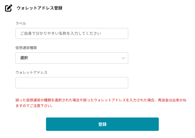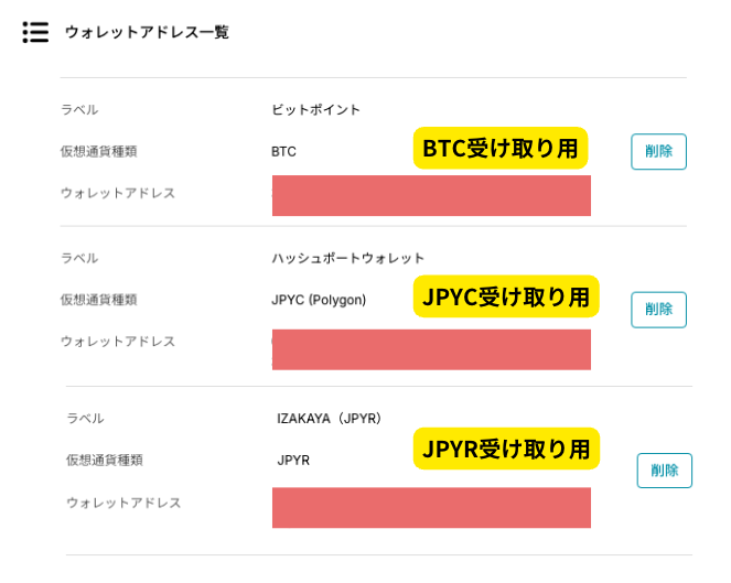 ウォレットアドレスは、貸し出す通貨とそのウォレットのアドレスを適宜登録しておいてください!全部IZAKA-YAのウォレットアドレスを登録しても問題ないです!