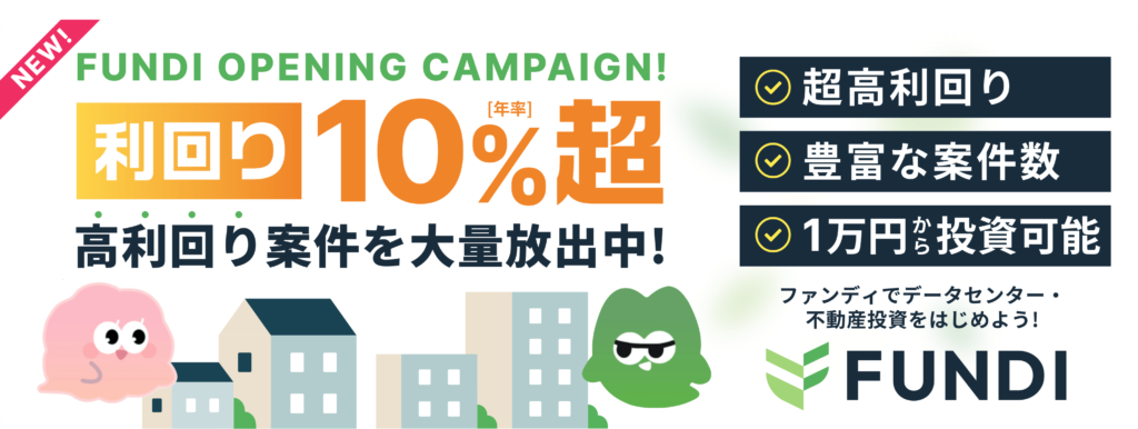FUNDIはデータセンター案件に強い不動産クラウドファンディングサービスで、大きい売却益も狙えるデータセンター開発の不動産に特に注力しています。