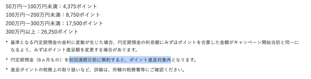 - 6ヶ月ものの定期と言いながら、満期解約がダメというのはいかがなものか? どうすればポイントがもらえるのか?