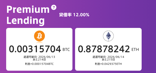 新規貸出・プレミアム移行・紹介登録などを行うことで「年利アップ」や「暗号資産プレゼント」の特典が受けられます。