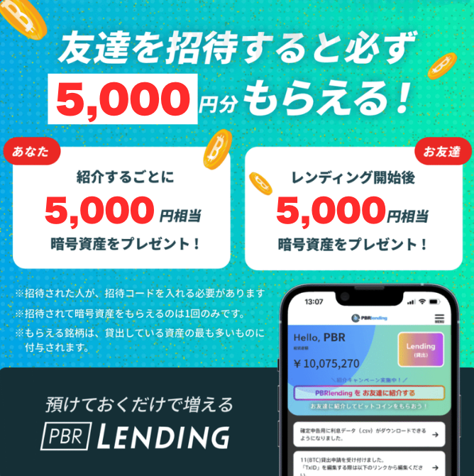 暗号資産レンディング初心者向けに、国内最高水準の利率+年末年始感謝還元祭キャンペーンを展開するPBR Lending「年末年始 感謝還元祭」の特典が狙える今が一番オトクに始められる!
