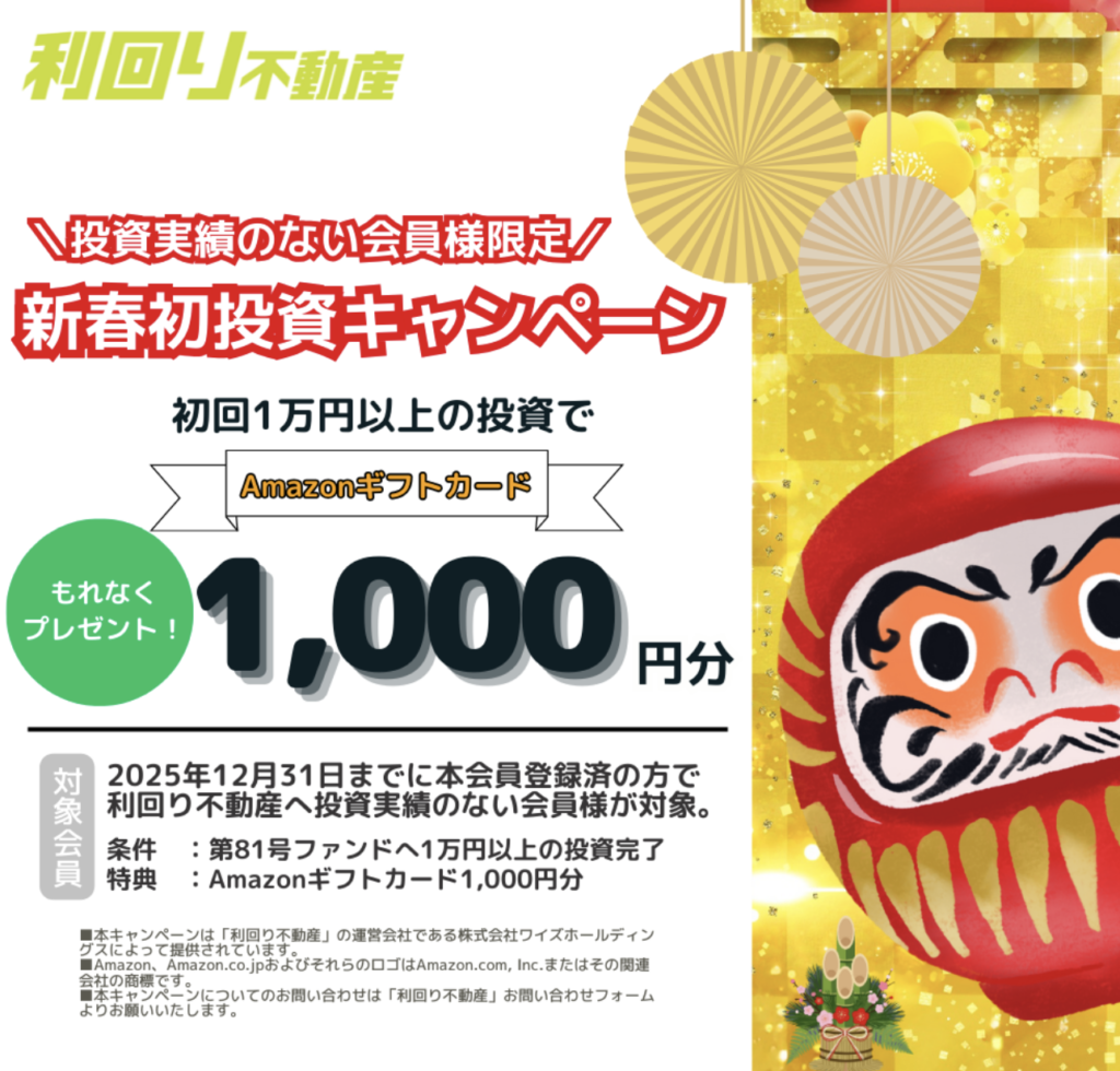 【2026年最新】利回り不動産のお年玉キャンペーンが凄すぎる!Amazonギフト券+最大10%利回りを狙うチャンス【ワイズコインとは?】