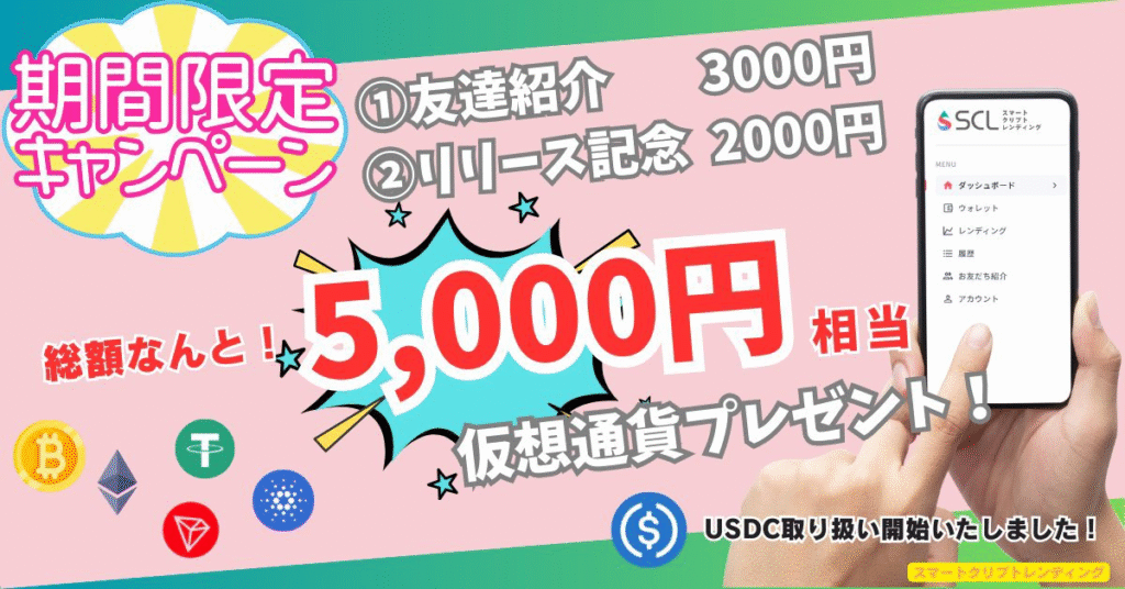 ビットコインが1800万円(2025年7月14日)を突破して、暗号資産に注目が集まっている中、ピッタリのサービスがリリースされました。その名も「スマートクリプトレンディング」(以下、SCL)!!