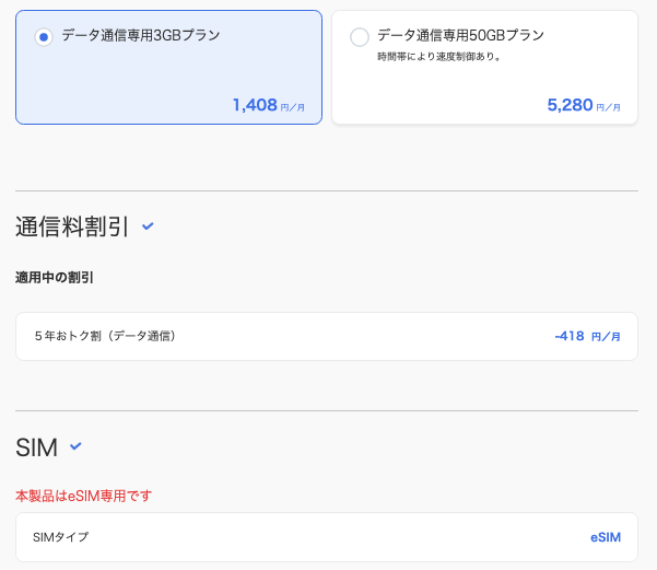 これを選択することで、今回の目玉である「新トクするサポート+」が自動適用されて、月々160円での運用が可能になります。