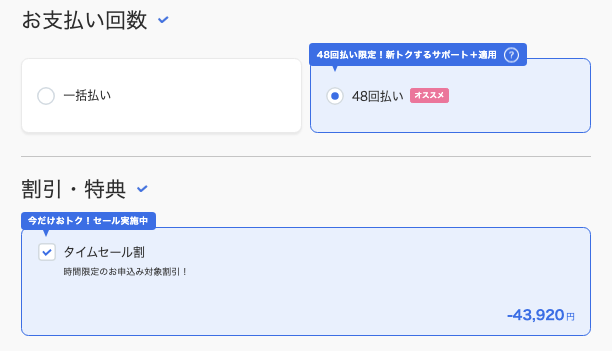 ここが今回の手続きで一番のキモです!絶対に「48回払い」を選んでください。