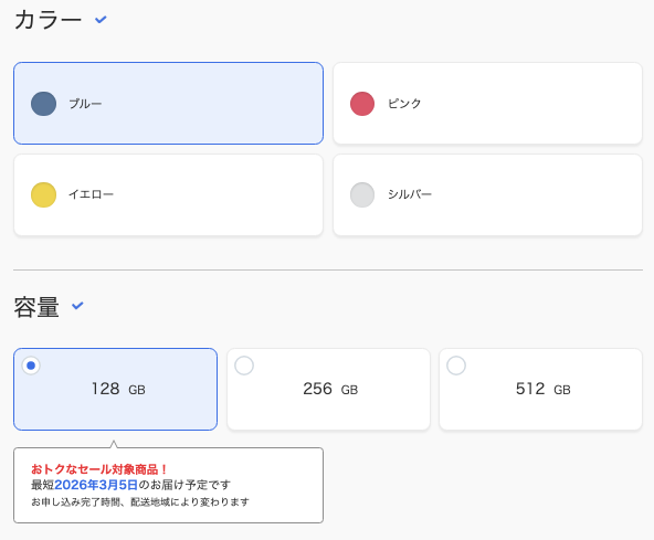 ご希望のiPad(A16)のスペックを選択します