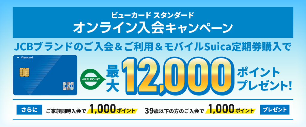 最大12,000ポイントプレゼント!ビューカード スタンダードオンライン入会キャンペーン