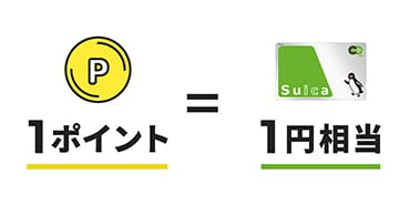 1ポイント=1円としてSuicaにチャージでき、無駄なく活用可能です。(期間限定ポイントは、Suicaへのチャージにはご利用いただけません)
