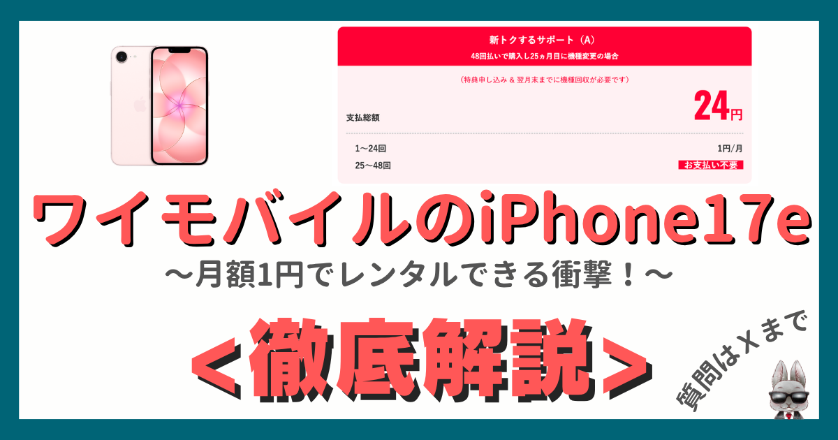 ワイモバイル!人気機種iPhone 17eが緊急値下げ!iPhone 17e(256GB)が実質24円!?月額1円の衝撃!